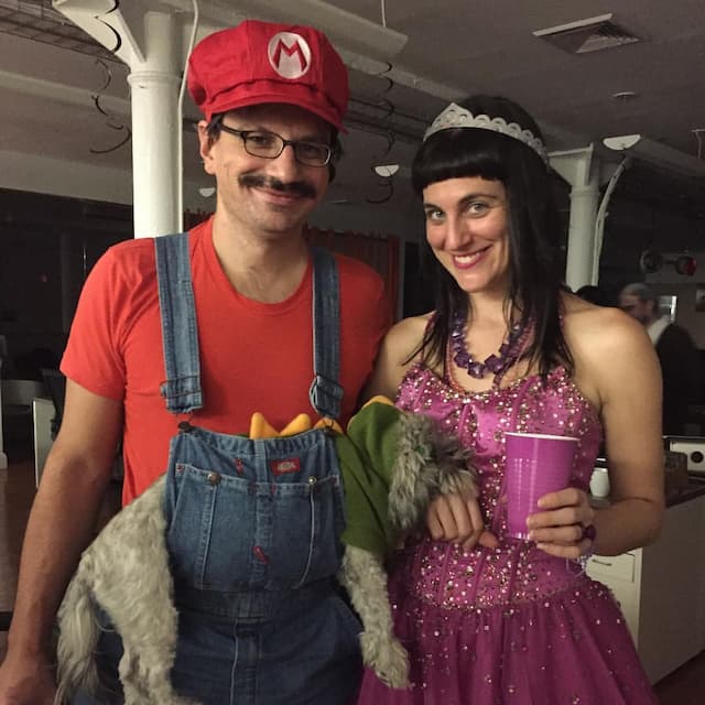 My wife and I with our dog. Since this photo was taken a baby human has joined our family.